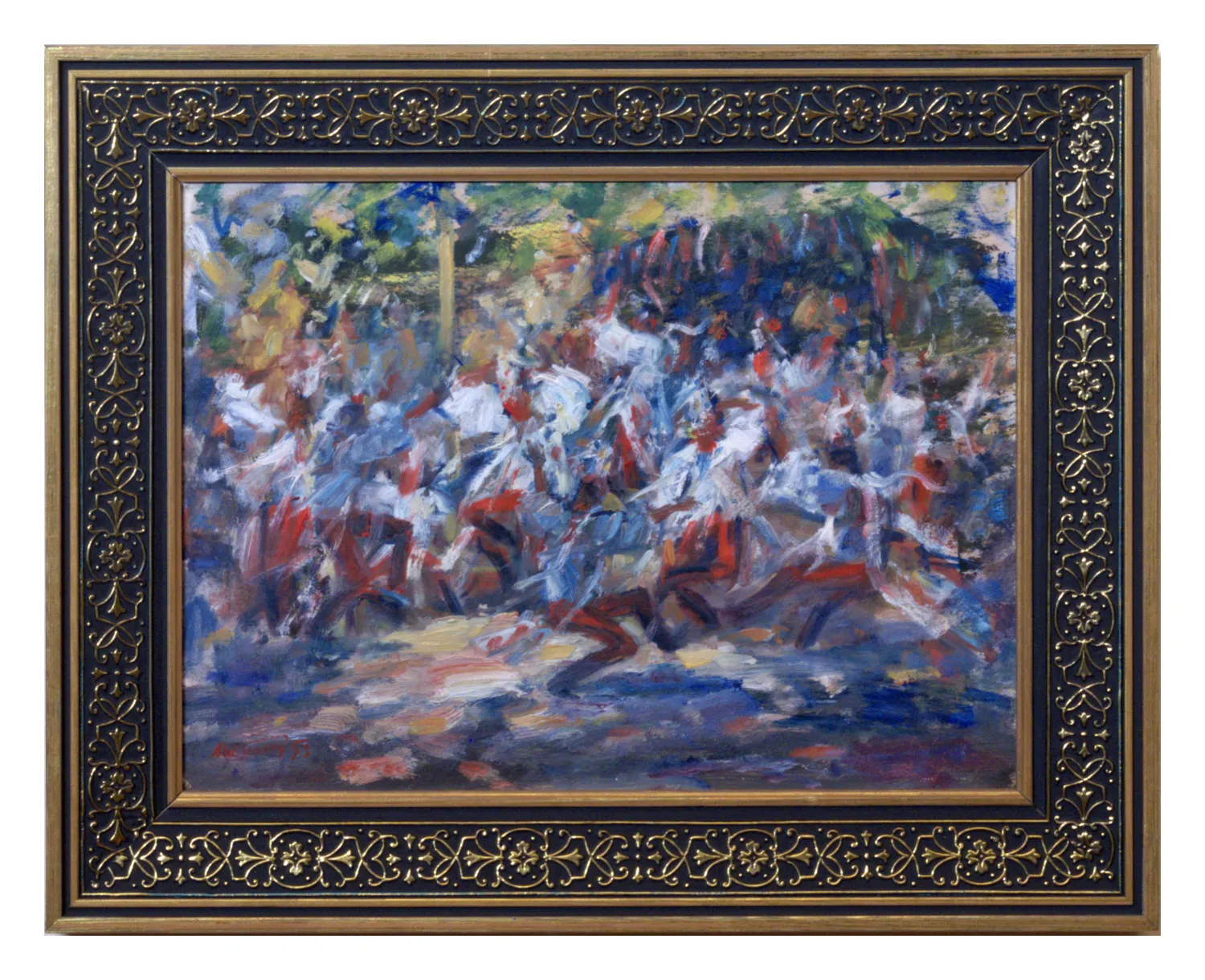 Aleš Černý (1920-1984) - Brněnský rodák studoval u významných malířů Emanuela Hrbka a Františka Süssera, později u Josefa Zamazala. Blízce spolupracoval se Slováckým kroužkem v Brně a často vyjížděl na Slovácko, kde ve folkloru nalezl nekonečnou inspiraci pro své práce. Aleš Černý je poprávu označován jako malíř tance. Touha zachytit tento vznešený pohyb - jeden ze základních lidských projevů, prostupuje celou jeho tvorbou. Aleš Černý bohužel umírá předčasně na vrcholu svých tvůrčích sil.
