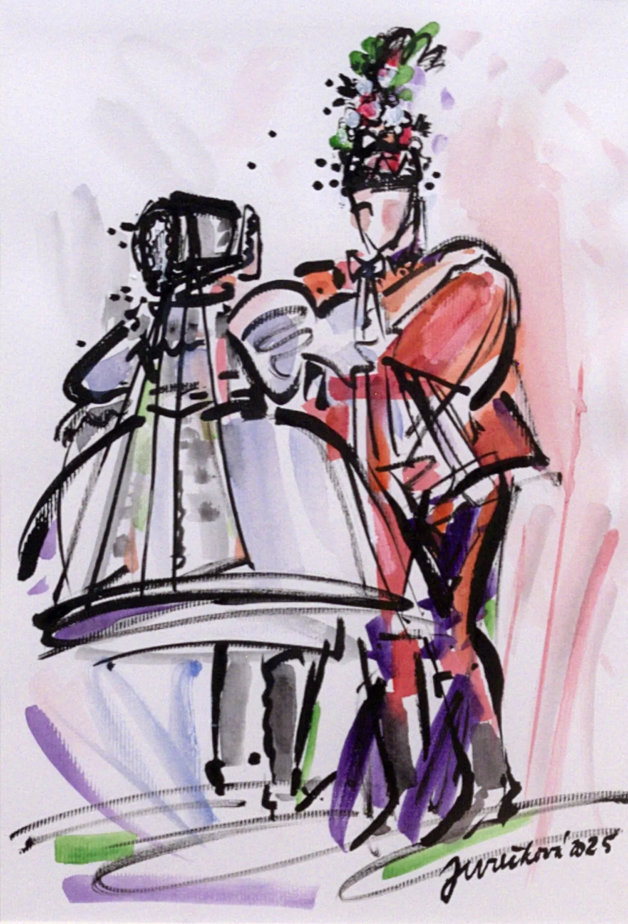lavírovaná perokresba