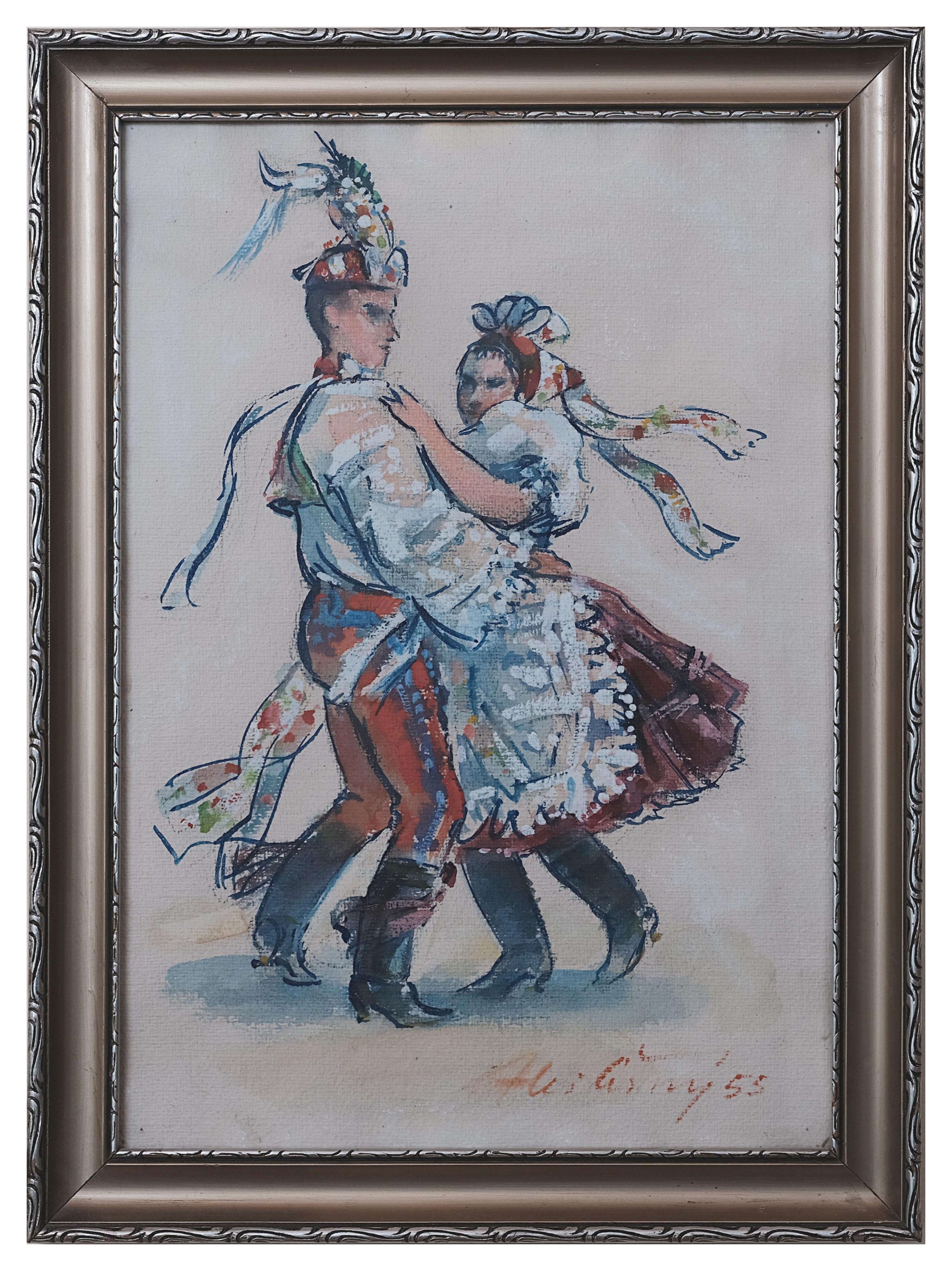 Aleš Černý (1920-1984) - Brněnský rodák studoval u významných malířů Emanuela Hrbka a Františka Süssera, později u Josefa Zamazala. Blízce spolupracoval se Slováckým kroužkem v Brně a často vyjížděl na Slovácko, kde ve folkloru nalezl nekonečnou inspiraci pro své práce. Aleš Černý je poprávu označován jako malíř tance. Touha zachytit tento vznešený pohyb - jeden ze základních lidských projevů, prostupuje celou jeho tvorbou. Aleš Černý bohužel umírá předčasně na vrcholu svých tvůrčích sil.