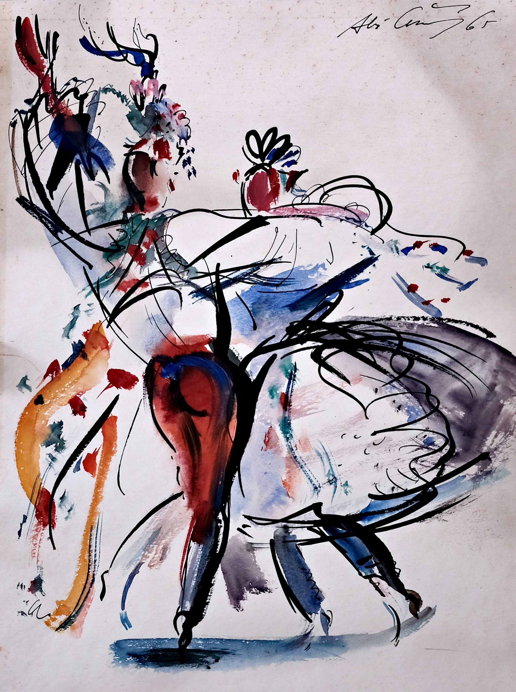 Aleš Černý (1920-1984) - Brněnský rodák studoval u významných malířů Emanuela Hrbka a Františka Süssera, později u Josefa Zamazala. Blízce spolupracoval se Slováckým kroužkem v Brně a často vyjížděl na Slovácko, kde ve folkloru nalezl nekonečnou inspiraci pro své práce. Aleš Černý je poprávu označován jako malíř tance. Touha zachytit tento vznešený pohyb - jeden ze základních lidských projevů, prostupuje celou jeho tvorbou. Aleš Černý bohužel umírá předčasně na vrcholu svých tvůrčích sil.