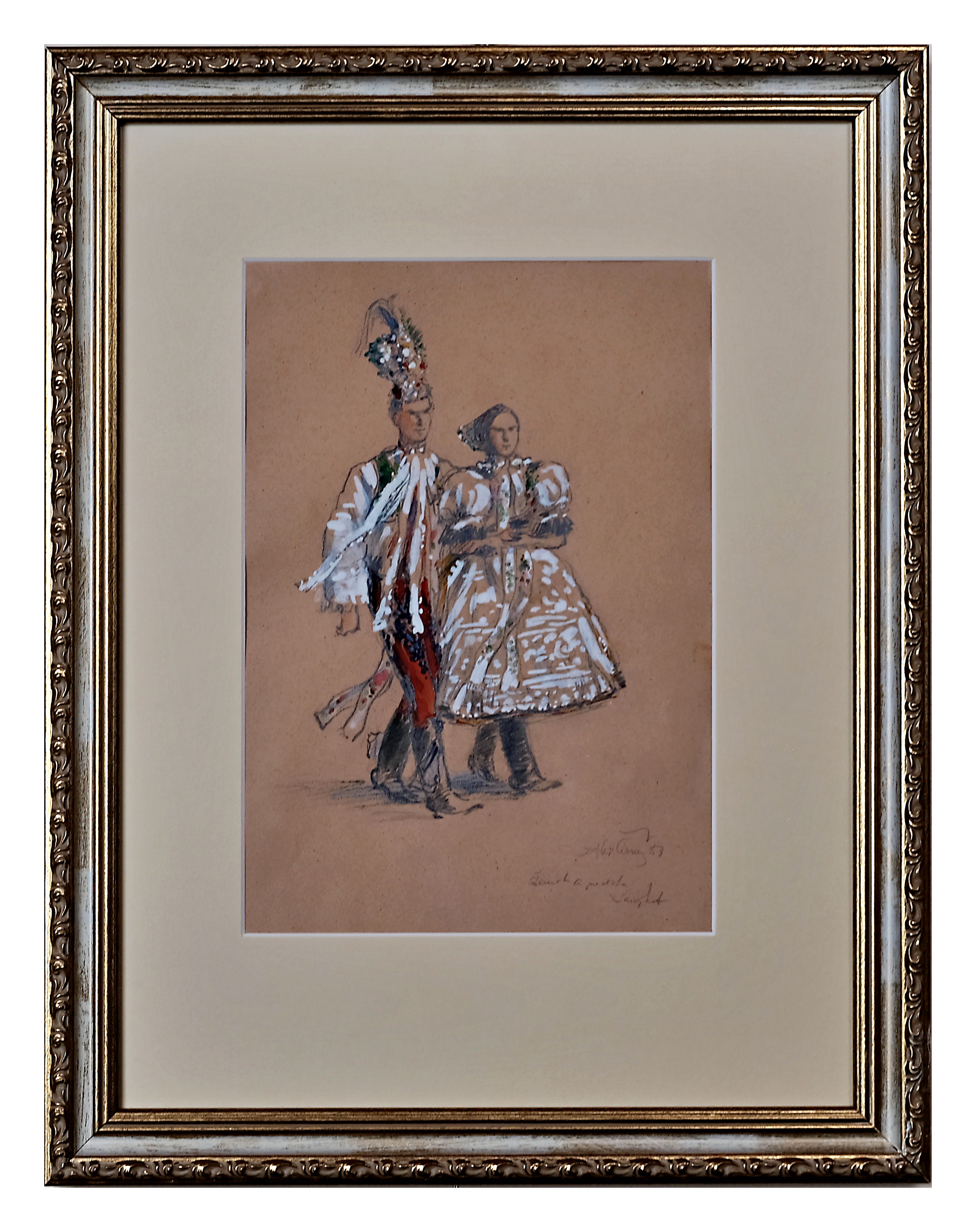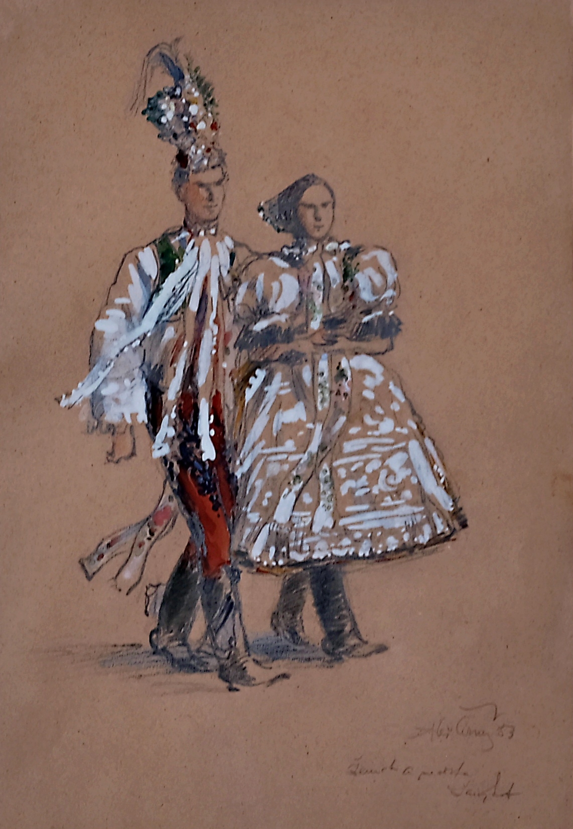Aleš Černý (1920-1984) - Brněnský rodák studoval u významných malířů Emanuela Hrbka a Františka Süssera, později u Josefa Zamazala. Blízce spolupracoval se Slováckým kroužkem v Brně a často vyjížděl na Slovácko, kde ve folkloru nalezl nekonečnou inspiraci pro své práce. Aleš Černý je poprávu označován jako malíř tance. Touha zachytit tento vznešený pohyb - jeden ze základních lidských projevů, prostupuje celou jeho tvorbou. Aleš Černý bohužel umírá předčasně na vrcholu svých tvůrčích sil.
