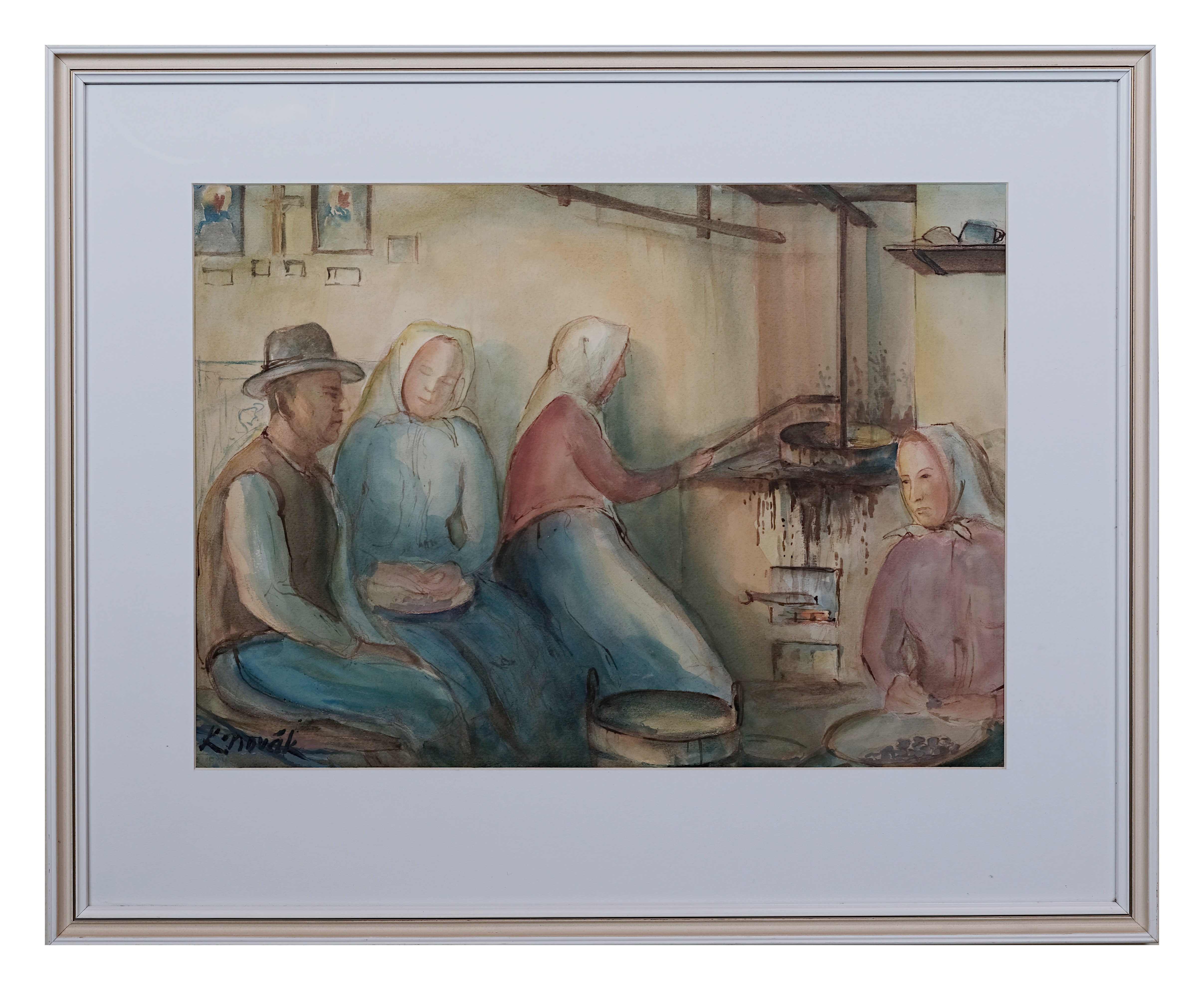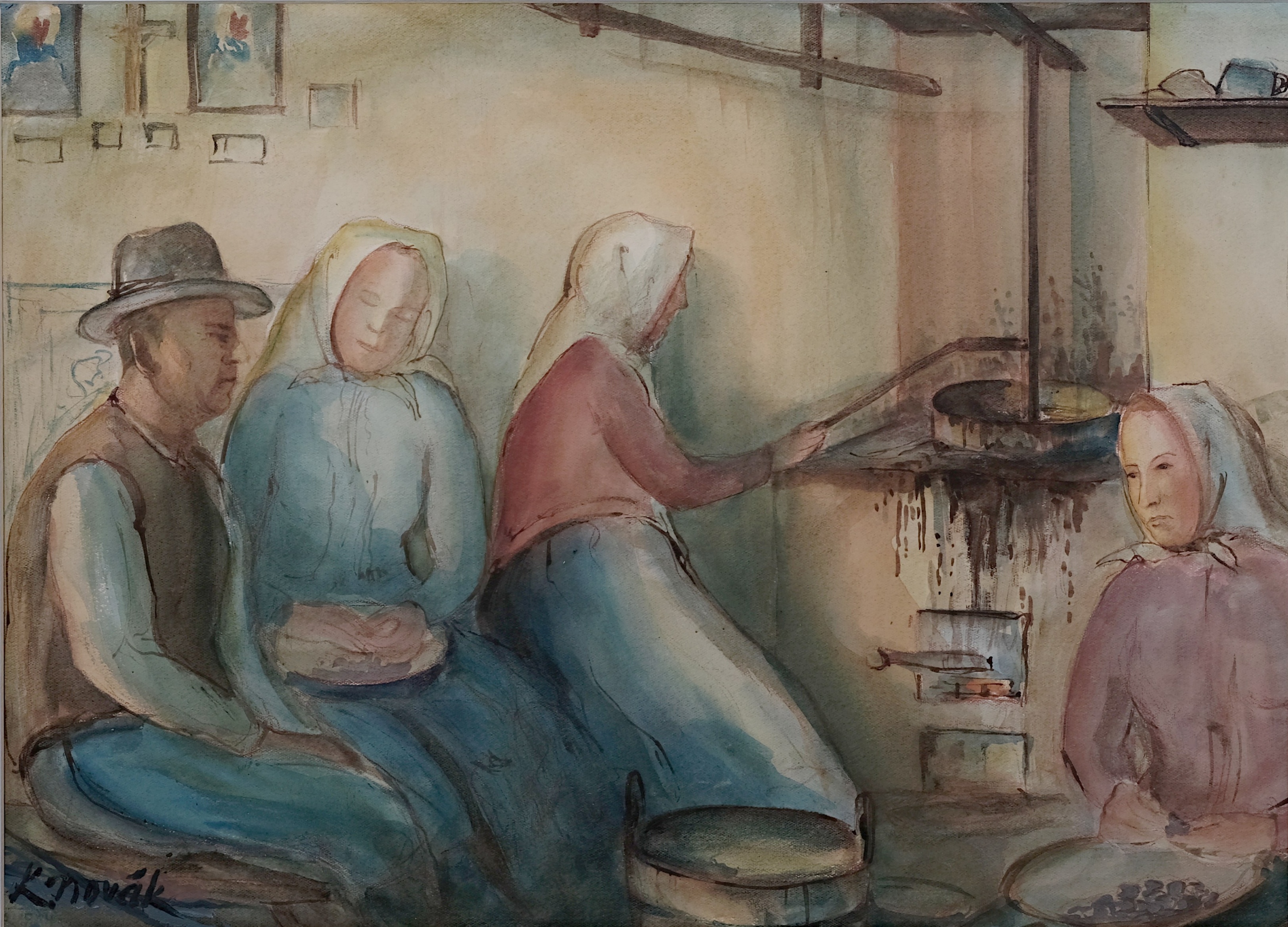 Karel Novák (1915–2006) - Mistr Karel Novák patří mezi významné malíře Slovácka a celé jižní Moravy. Narodil se v Rohatci a odtud šel studovat na Státní reálku v Hodoníně. Středoškolská studia dokončil na II. státní reálce v Brně. Ve studiích pokračoval na Státní pedagogické akademii v Brně, po jejímž absolvování působil jako učitel na školách v okrese Hodonín a Břeclav. Svoji touhu věnovat se výtvarnému umění mohl realizovat až po ukončení II. světové války. Pod vedením malíře Václava Hejny úspěšně složil přijímací zkoušky na pražskou AVU a nastoupil do speciální školy figurální malby Prof. Jakuba Obrovského a Prof. Karla Mináře. Po absolutoriu v r. 1949 se natrvalo usadil na jižní Moravě a pokračoval i ve své pedagogické činnosti jako středoškolský profesor v Hodoníně a v Holíči na Slovensku. Svoji dlouholetou pedagogickou činnost završil v letech 1960 – 1975 na Pedagogickém institutu ve Zlíně a katedře výtvarné výchovy Pedagogické fakulty v Ostravě. Od roku 1950 byl členem Sdružení výtvarných umělců moravských v Hodoníně (SVUM). V roce 1991 se podílel na znovuobnovení tohoto sdružení, od roku 1994 byl jeho předsedou a později jeho čestným předsedou. Dále byl členem Sdružení výtvarných umělců jihovýchodní Moravy v Uherském Hradišti. Zanechal po sobě poměrně rozsáhlé umělecké dílo, které vznikalo v bezprostředním kontaktu s přírodou a těmi, které maloval. Jeho obrazy jsou proto blízké a srozumitelné pro široký okruh jeho obdivovatelů. Známé jsou hlavně jeho krajiny, ale nemalou část své umělecké tvorby věnoval figurálním motivům z prostředí Slovácka, Podluží nevyjímaje. Z jeho obrazů vyzařuje hluboká lidskost a snaha o zachycení přírody a člověka té doby.
