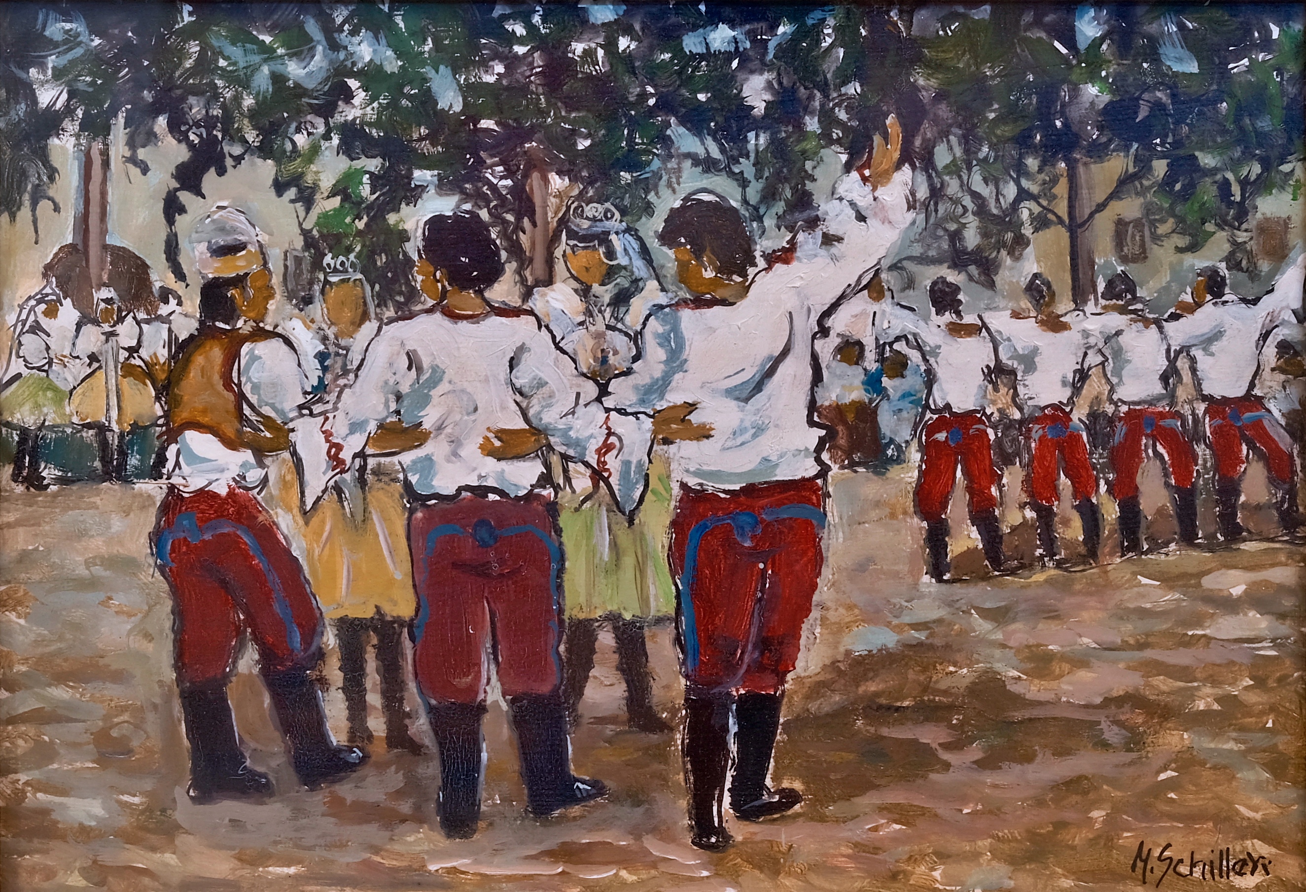 Milan Schiller (1914-2002) - Akademický malíř a restaurátor, absolvent Akademii výtvarných umění v Praze u prof. J. Obrovského a O. Nejedlého. V jeho díle převažuje zejména krajinomalba, zaujala jej také městská zákoutí v Praze a krajina jižních Čech, Polabí u Děčína. Významné jsou také jeho restaurátorské práce jako např. opravy chrámu Sv. Mikuláše v Praze.