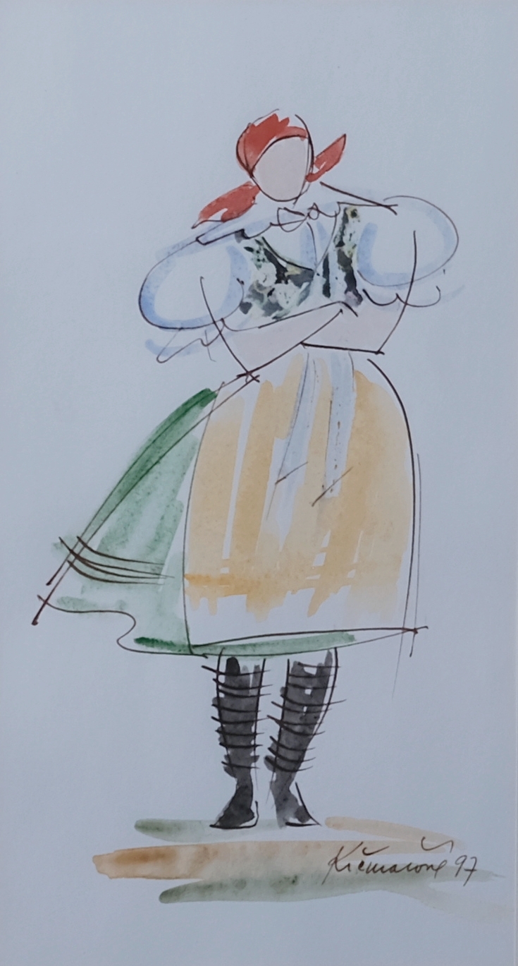 Na akvarelu z koncertu Břeclavanu dne 26. 10. 1996 v Břeclavi je zachycena tanečnice Markéta Cahová při zpěvu v pásmu fašankových tanců "Marína", oblečena v tzv. mánesu (rekonstrukce kroje dle malby J. Mánesa - popis připravujeme).