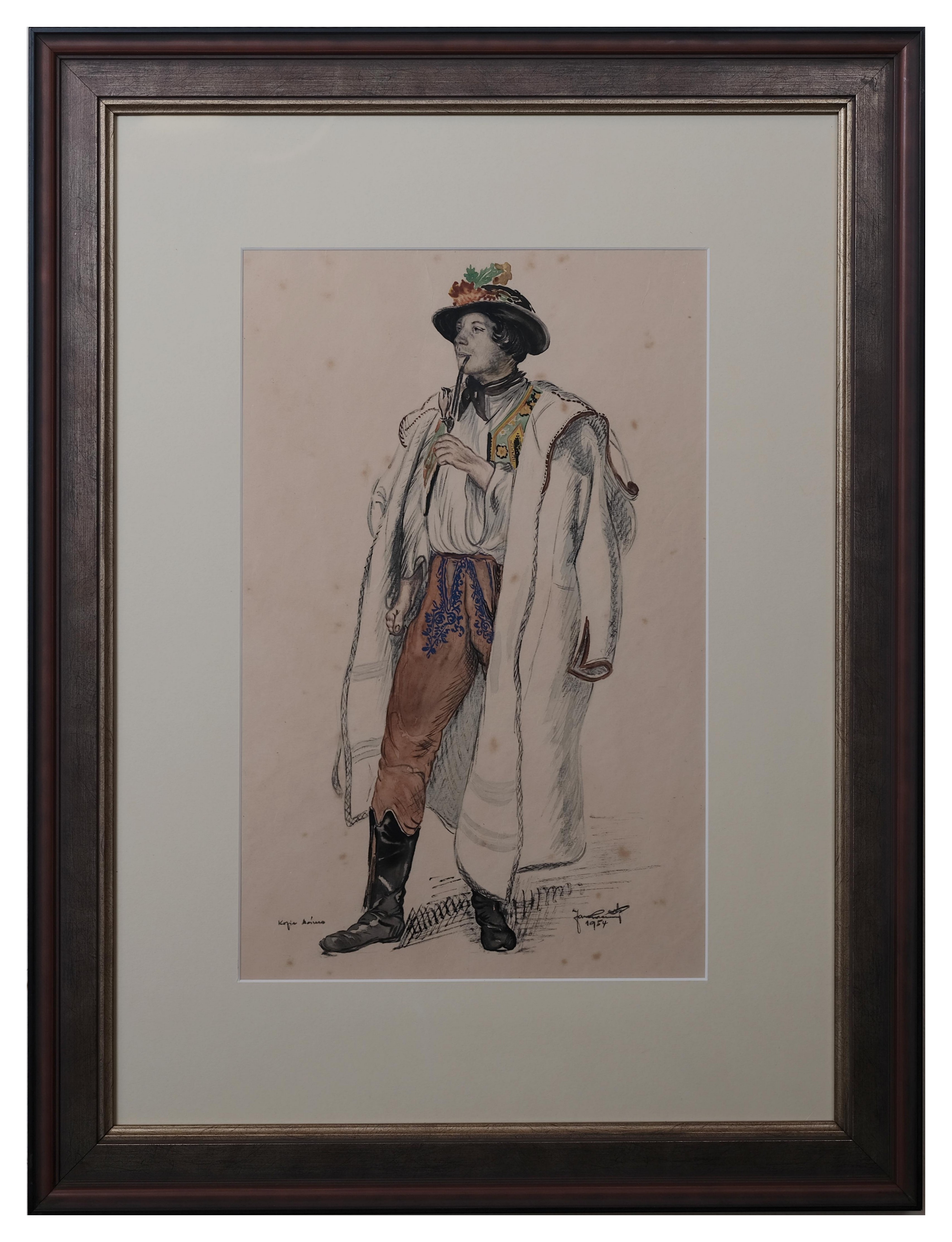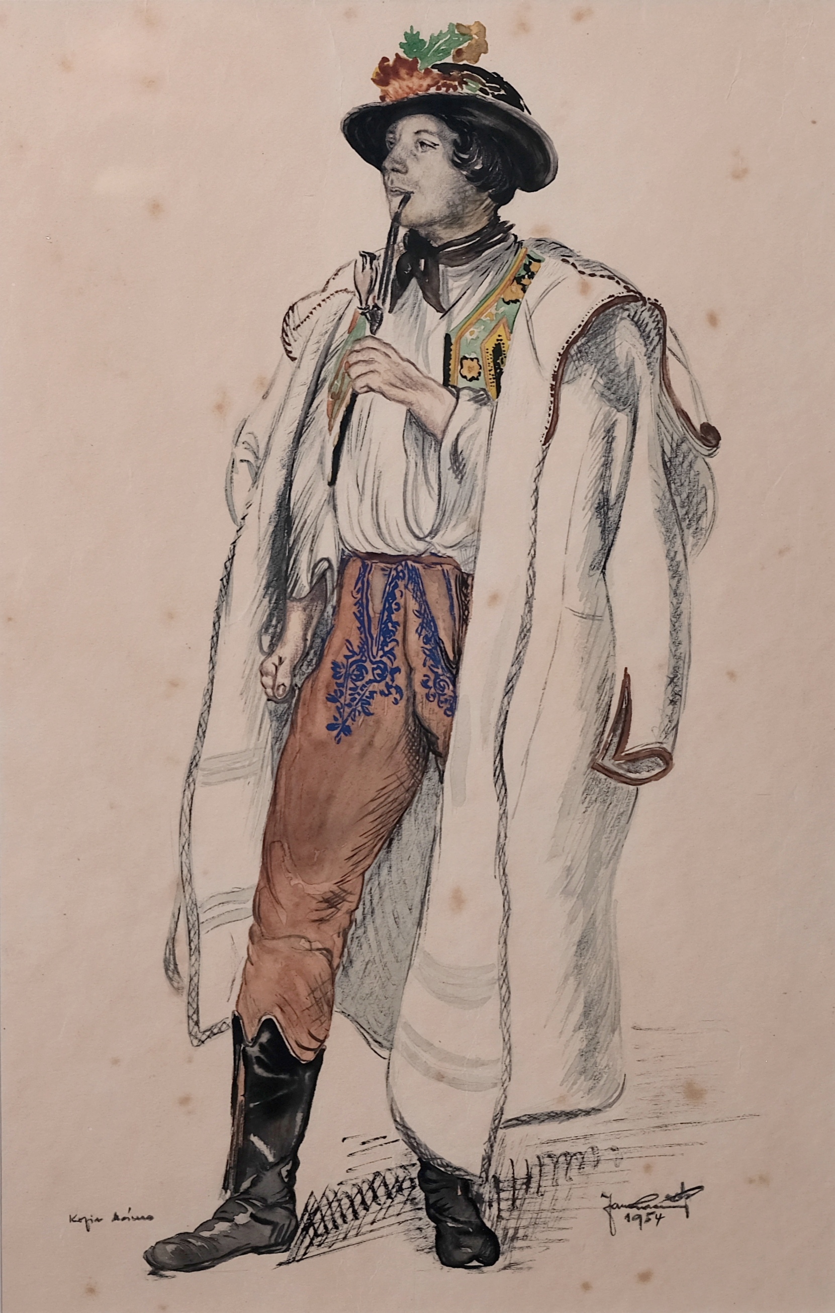 Nejvýraznější krojovou součástí je však „halina“. Tento dlouhý kabátec sahající až do půli lýtek má portrétovaný přehozen přes ramena, což byla sváteční varianta. Ve všední dny se nosil oblečený „do rukávů“. A nosili jej svobodní i mužáci.